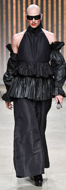 Há, sim, um link com o feminismo, já que Silvério também usou a planta Beladona como um de seus pontos de partido. No século 18, as mulheres que a usavam eram chamadas de demoníacas e bruxas e as putas a usavam para esfregar nos olhos e atrair mais homens. Na passarela, os modelos entraram com uma pulseira fluor verde, ora no pulso, ora no tornozelo, para simbolizar a intoxicação por Beladona, uma das mais tóxicas do Oriente.