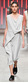 O desfile começa com os looks monocromáticos, com novas técnicas de alfaiataria e moulage, experimentando com lenços que se tornam saias, cintos e tops. O tricô aparece em blusinhas transparentes e a única estampa da coleção é localizada em um vestido e em um top.