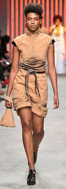 A estilista Jal Vieira contou a história emocionante de sua mãe, que saiu sozinha do sertão para tentar a vida no Sudeste. O tecido feito de cortiça com recortes e franjas apareceu em boleros, vestidos, calças e saias.