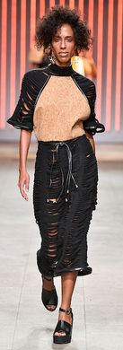A marca Rainha Nagô é a primeira 100% plus size a estrear na Casa de Criadores. Falando sobre gordofobia e body positive, a coleção apresentou códigos que geralmente passam longe de roupas maiores: muita transparência, decotes, blusas de tela e silhuetas justas para homens e mulheres.